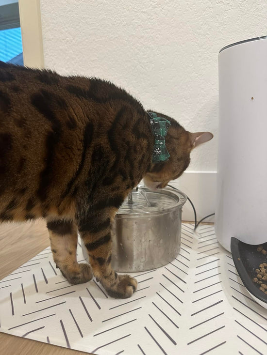 Si vous ne constatez pas de différence notable dans les habitudes de consommation d'eau de votre chat (des gorgées plus fréquentes, une meilleure hydratation et une plus grande tranquillité d'esprit), renvoyez-le-nous pour un remboursement complet.